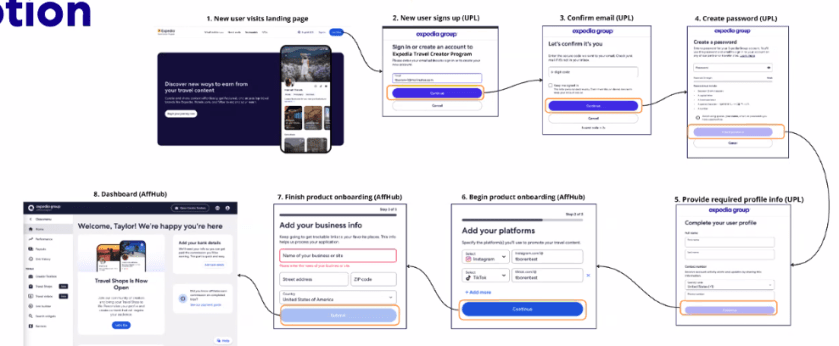 End-to-end user journey UI: Travel Shops Creator Flow – Expedia Group